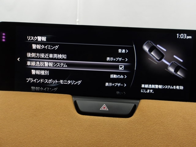車線逸脱警報システムは、自車が車線から逸脱する可能性があることを知らせるシステムです。自車が車線から逸脱する可能性があると、警報と画面表示で運転者に危険を知らせます。