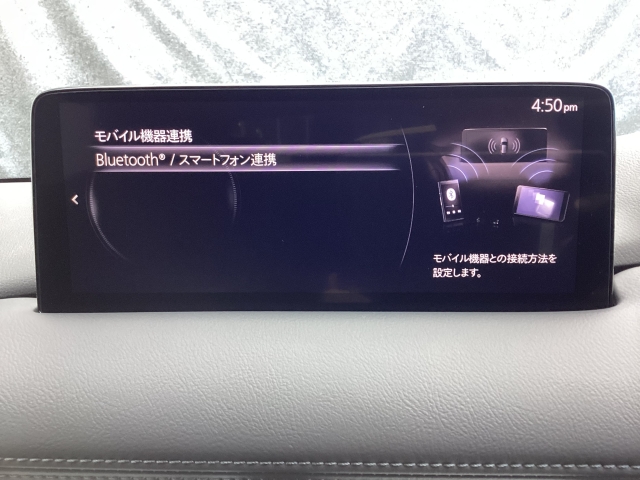 Apple Carplay・Android Auto対応!マツダ コネクト(コマンダーコントロール)でスマートフォンを操作して、通話、音楽を聴いたり、マップで目的地を調べることができます。