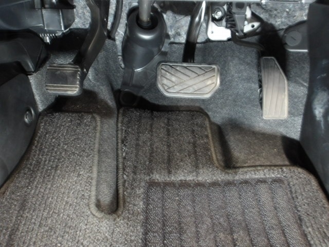 運転席の気になる足元も汚れが少なく、大変きれいな状態に仕上がっております。サイドブレーキはペダル式です。