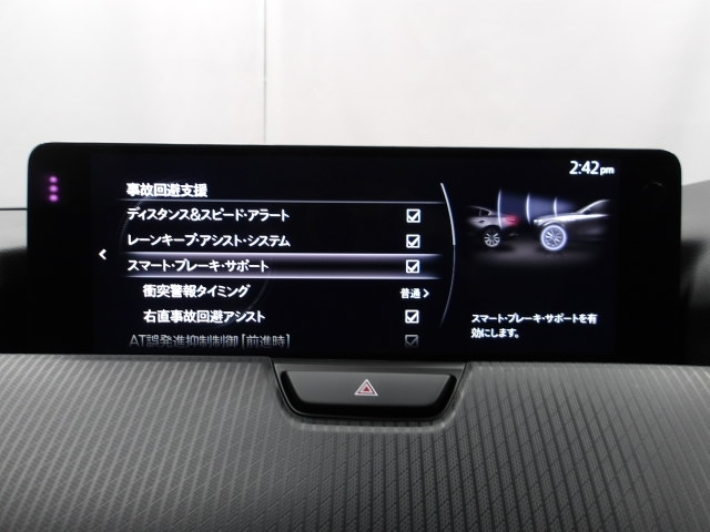 MRCC(マツダレーダークルーズコントロール)は先行車との車間を維持しながら追従走行を行い、長距離でのドライバー負担を軽減させてくれます。