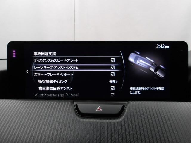 ハンドル操作をアシストすることにより車線からの逸脱回避を支援します。