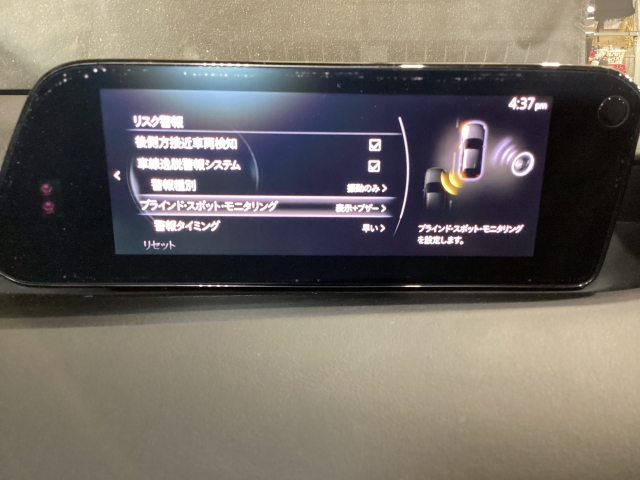後方左右の死角に入ってしまった車両をセンサーが感知しドライバーにお知らせしてくれるブラインドスポットモニタリングシステム。高速の合流などでも安心できます。