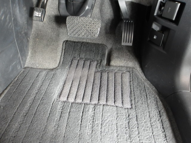 運転席の気になる足元も汚れが少なく、大変きれいな状態に仕上がっております。サイドブレーキはペダル式です。