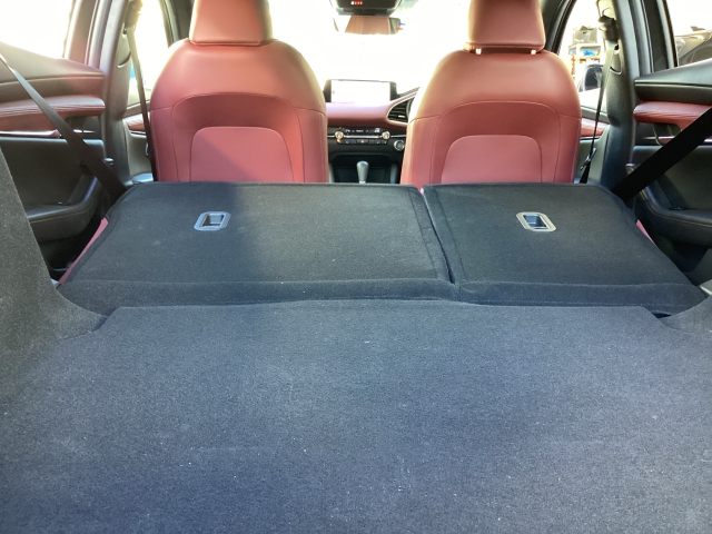 リアシートを倒すとご覧のとおりの大きなトランクスペースが出現します。大きな買い物でも余裕で積み込めますね。