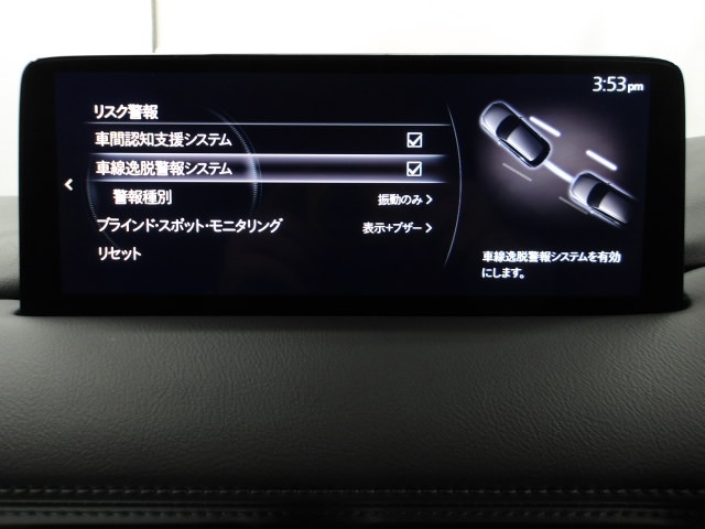車線逸脱警報システムは、自車が車線から逸脱する可能性があることを知らせるシステムです。自車が車線から逸脱する可能性があると、警報と画面表示で運転者に危険を知らせます。