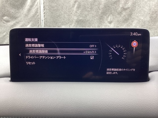 フォワードセンシングカメラで認識した交通標識をアクティブドライビングディスプレイに表示し、交通標識の見落とし防止を図り、安全運転を支援します。