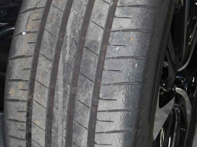 各タイヤのショルダー部分にひびが見られますが、走行や安全性に問題はなく交換は不要です。タイヤ溝もたっぷり5ミリ残っております!