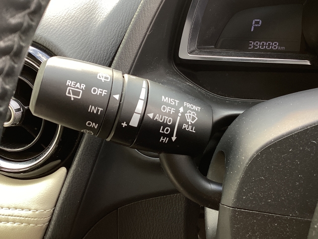 レバーをAUTOの位置にしているとき、レインセンサーが雨を感知すると、雨量に応じてワイパーが自動で作動してくれるオートワイパーを装備!設定変更で非作動にすると、間欠作動に固定されます。