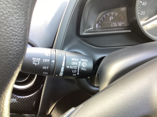 レバーをAUTOの位置にしているとき、レインセンサーが雨を感知すると、雨量に応じてワイパーが自動で作動してくれるオートワイパーを装備!設定変更で非作動にすると、間欠作動に固定されます。