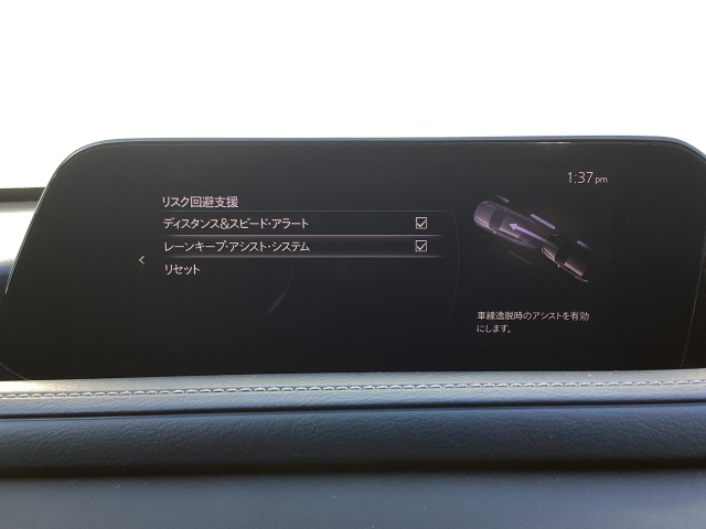 約40キロ以上での走行時、フロントガラスに設置したカメラで車線を認識し、車両がその線を踏み越える可能性があると判断すると、警報音でドライバーに注意を促します。