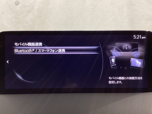 Apple Carplay・Android Auto対応!マツダ コネクト(コマンダーコントロール)でスマートフォンを操作して、通話、音楽を聴いたり、マップで目的地を調べることができます。