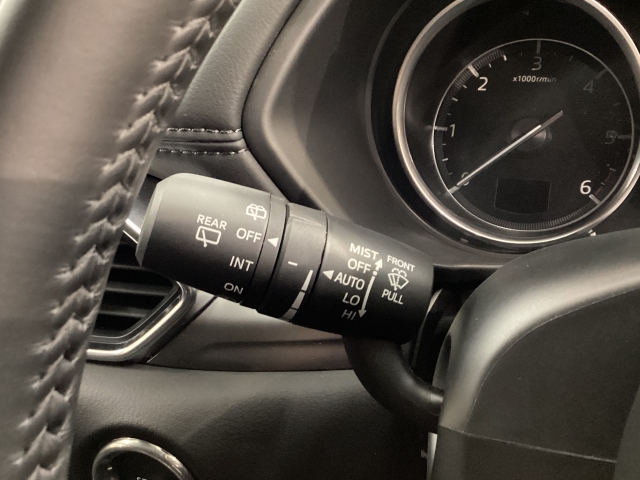 レバーをAUTOの位置にしているとき、レインセンサーが雨を感知すると、雨量に応じてワイパーが自動で作動してくれるオートワイパーを装備!設定変更で非作動にすると、間欠作動に固定されます。