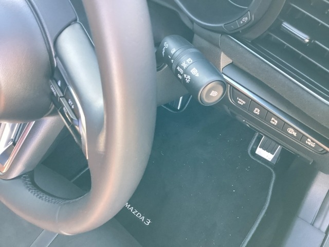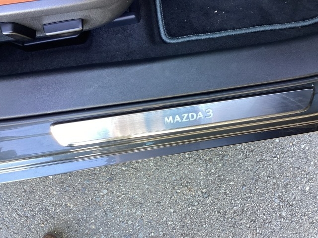 オプションのスカッフプレートです。MAZDA3のネームが効いてます。