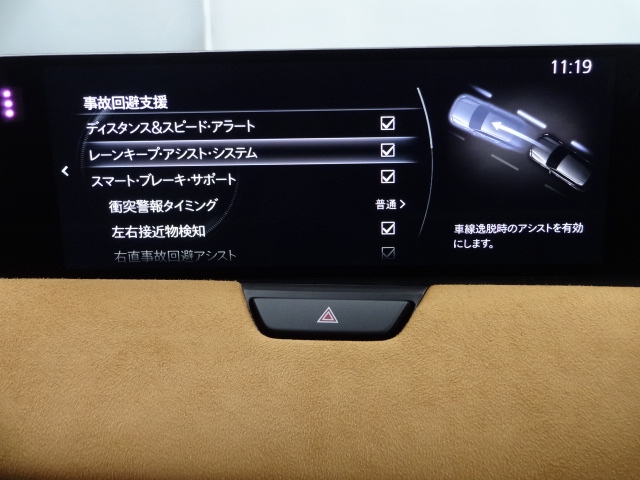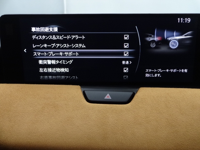 フロントガラスに速度など情報を表示します。前走車に重なるように表示されるので、視線を下げずに確認できますので安全で便利な機能です!