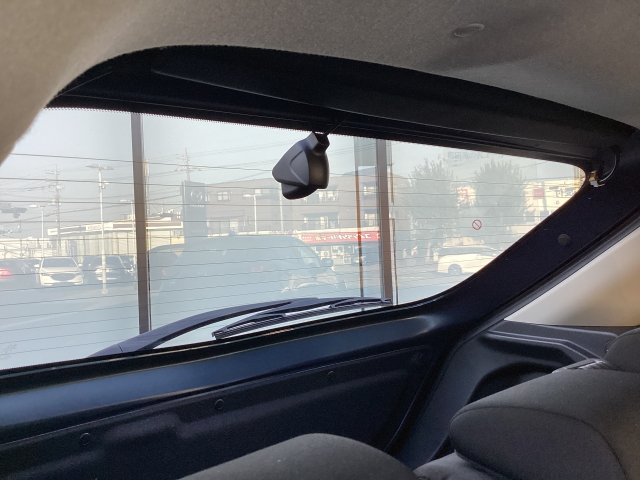 リア側ドライブレコーダー。運転中の映像・音声などを記録して、交通事故やトラブルが起きた時の正確な状況把握に役立つドライブレコーダーが装着されています。