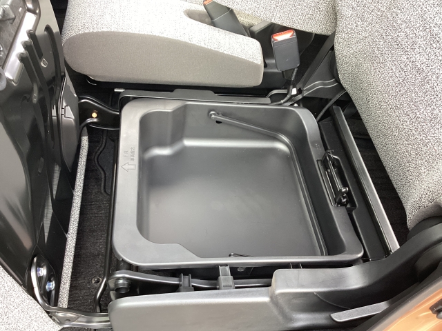 助手席下のシートアンダーボックスは、例えば「靴」なども収納できるゆとりのある容量を確保しています。