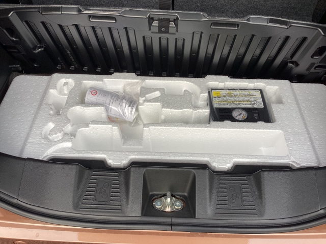 スペアタイヤは装備されずに、パンク修理キットを搭載しております。