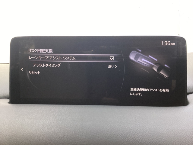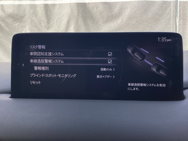 約45キロ以上での走行時、フロントガラスに設置したカメラで車線を認識し、車両がその線を踏み越える可能性があると判断すると、警報音でドライバーに注意を促します。