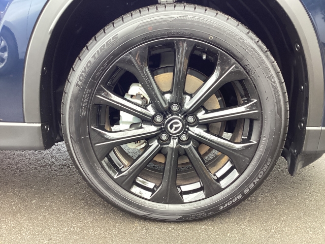 20インチブラックメタリック純正アルミホイールがボディデザインをより一層引き立たせ、『走る歓び』を演出しています。
