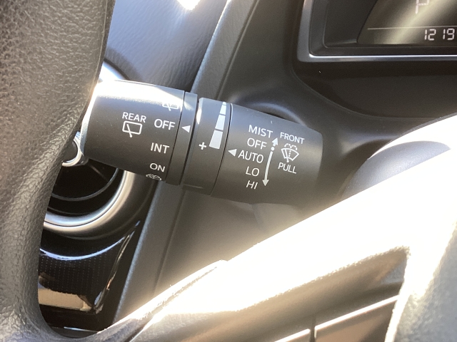 レバーをAUTOの位置にしているとき、レインセンサーが雨を感知すると、雨量に応じてワイパーが自動で作動してくれるオートワイパーを装備!設定変更で非作動にすると、間欠作動に固定されます。