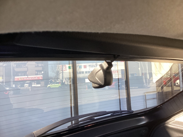 リア側ドライブレコーダー。運転中の映像・音声などを記録して、交通事故やトラブルが起きた時の正確な状況把握に役立つドライブレコーダーが装着されています。