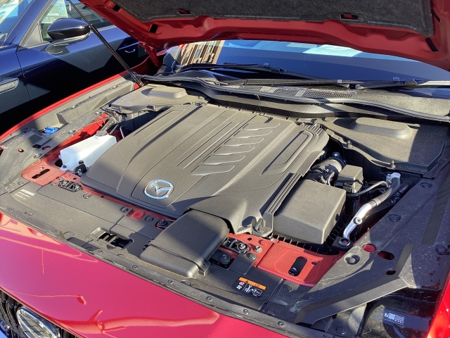 エンジンルームにもデザイン入ってます!ここにも6気筒のアピールあり