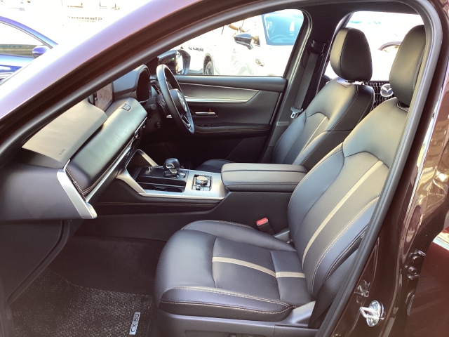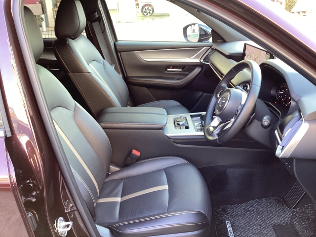 運転席、黒本革シート(座面と背もたれに縦ライン)