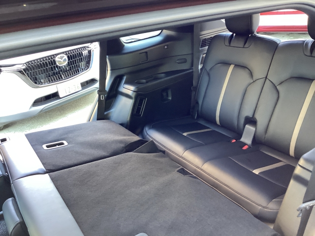 良くご覧ください、二列目の背もたれを前に倒して三列目に座ることできます。テーブル代わりに出来ちゃいます