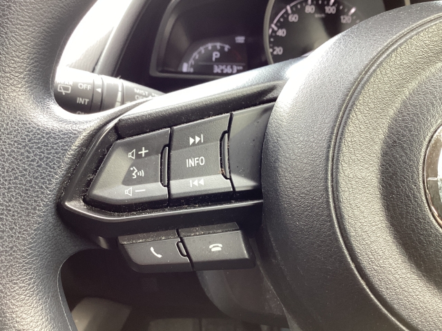 ステアリングにオーディオコントロールスイッチが装備されております。走行中も前方から視線をそらさず安全にオーディオの操作が可能です。