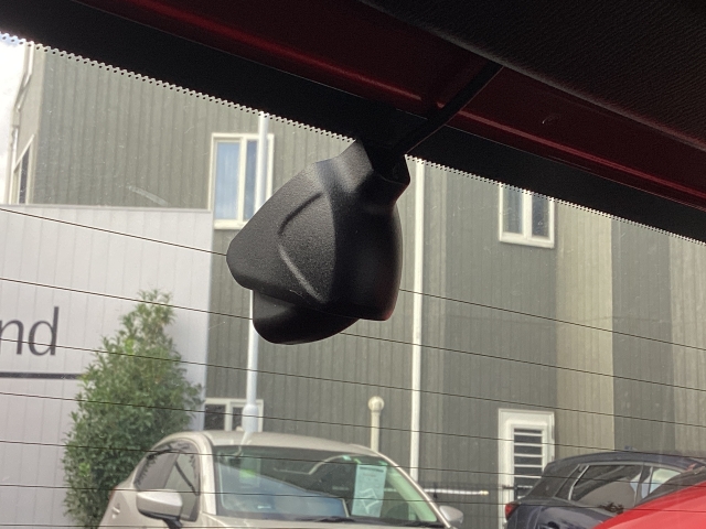 リア側ドライブレコーダー。運転中の映像・音声などを記録して、交通事故やトラブルが起きた時の正確な状況把握に役立つドライブレコーダーが装着されています。