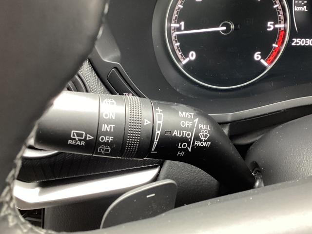 レバーをAUTOの位置にしているとき、レインセンサーが雨を感知すると、雨量に応じてワイパーが自動で作動してくれるオートワイパーを装備!設定変更で非作動にすると、間欠作動に固定されます。