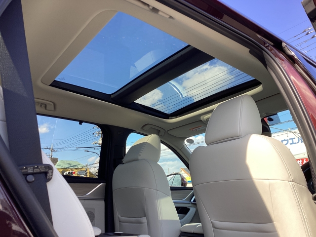 開放的な視界と明るさを実現する大型のパノラマサンンルーフ。後方乗員の視界範囲まで拡大しておりドライバーだけでなく全ての乗員に走る喜びや楽しさを提供します。サンルーフの開放感により車内はいつも明るく、自然と会話が弾んでドライブも一段と楽しくなります。