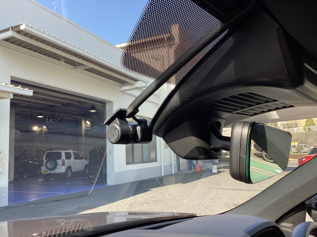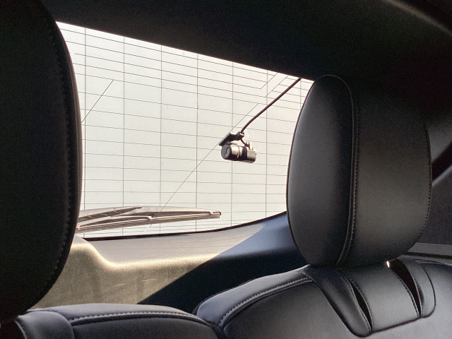リア側ドライブレコーダー。運転中の映像・音声などを記録して、交通事故やトラブルが起きた時の正確な状況把握に役立つドライブレコーダーが装着されています。