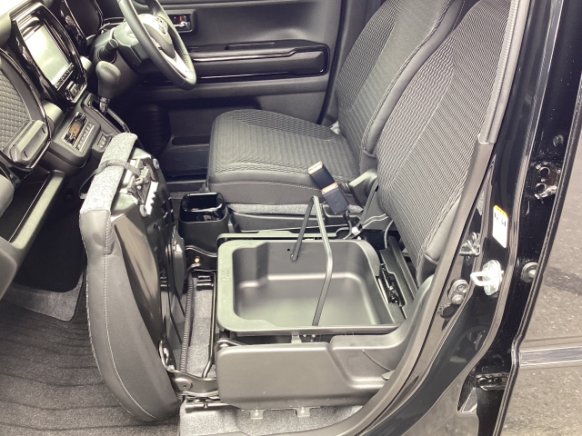助手席シートの下には持ち運びができる収納スペースがあります!