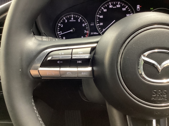 ステアリングにオーディオコントロールスイッチが装備されております。走行中も前方から視線をそらさず安全にオーディオの操作が可能です。