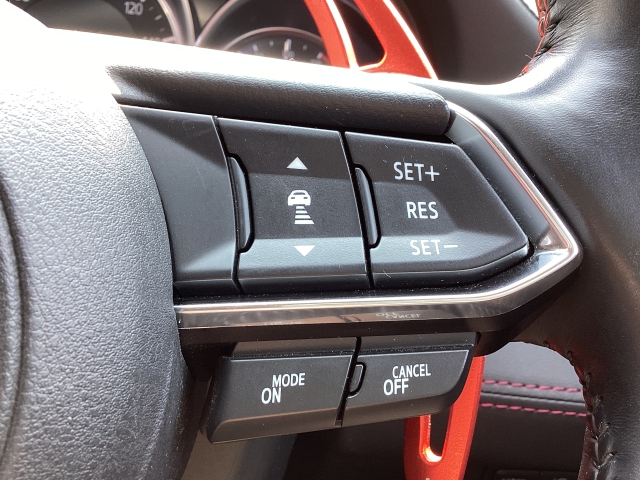 MRCC(マツダレーダークルーズコントロール)は先行車との車間を維持しながら追従走行を行い、長距離でのドライバー負担を軽減させてくれます。
