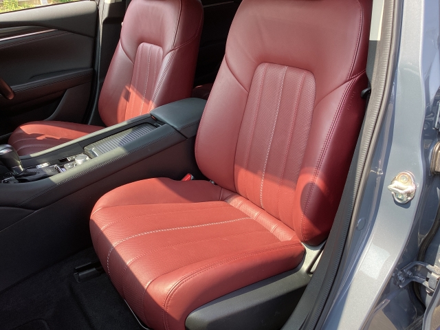立体感があり、シート中央部とサイド部をくっきりと分断したサポート性の高い形状のシートが「人馬一体」感を強く演出しています。