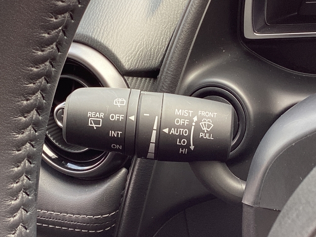 レバーをAUTOの位置にしているとき、レインセンサーが雨を感知すると、雨量に応じてワイパーが自動で作動してくれるオートワイパーを装備!設定変更で非作動にすると、間欠作動に固定されます。