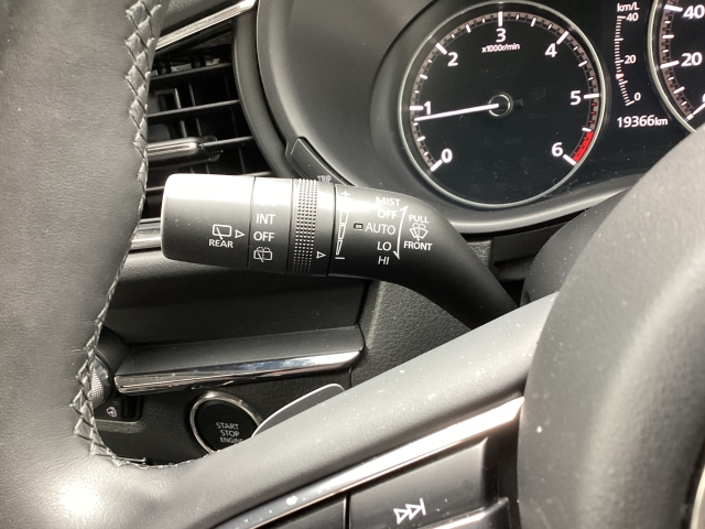 レバーをAUTOの位置にしているとき、レインセンサーが雨を感知すると、雨量に応じてワイパーが自動で作動してくれるオートワイパーを装備!設定変更で非作動にすると、間欠作動に固定されます。