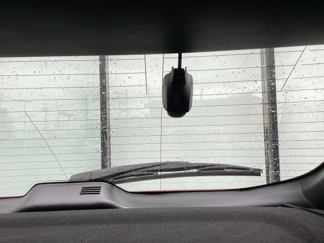 リア側ドライブレコーダー。運転中の映像・音声などを記録して、交通事故やトラブルが起きた時の正確な状況把握に役立つドライブレコーダーが装着されています。