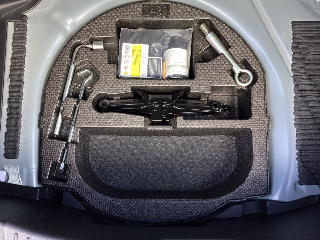 トランクの下には、パンク修理キットや工具が収納されています。