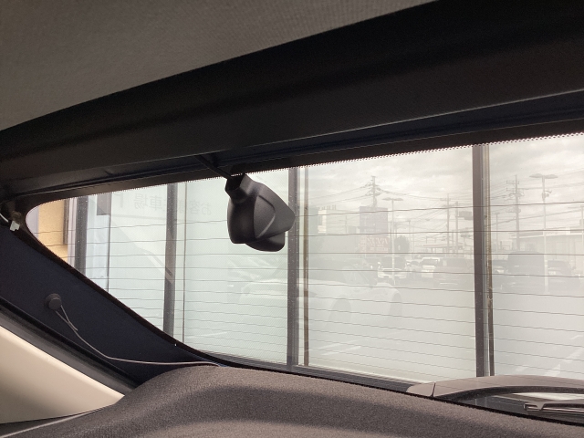 リア側ドライブレコーダー。運転中の映像・音声などを記録して、交通事故やトラブルが起きた時の正確な状況把握に役立つドライブレコーダーが装着されています。