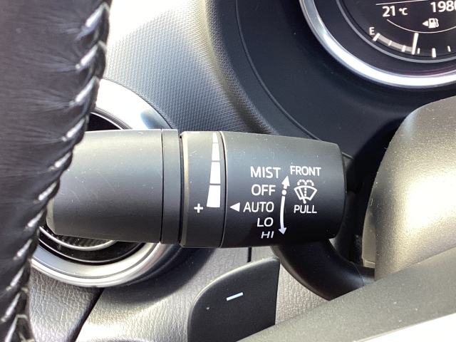 レバーをAUTOの位置にしているとき、レインセンサーが雨を感知すると、雨量に応じてワイパーが自動で作動してくれるオートワイパーを装備!設定変更で非作動にすると、間欠作動に固定されます。