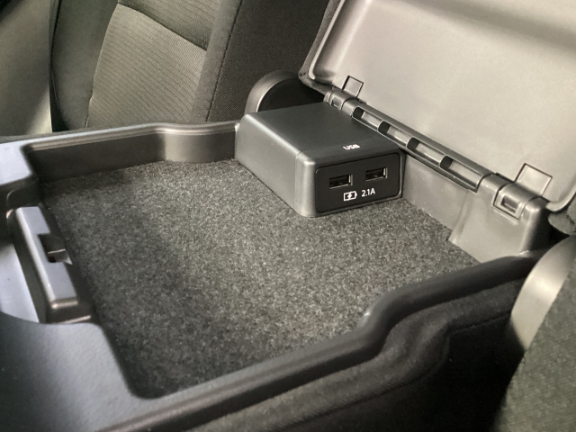 リヤ席ひじ掛けの中にも充電用USBを設置してありますので便利ですよね!