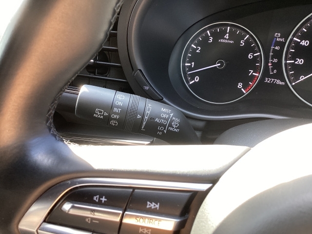 レバーをAUTOの位置にしているとき、レインセンサーが雨を感知すると、雨量に応じてワイパーが自動で作動してくれるオートワイパーを装備!設定変更で非作動にすると、間欠作動に固定されます。
