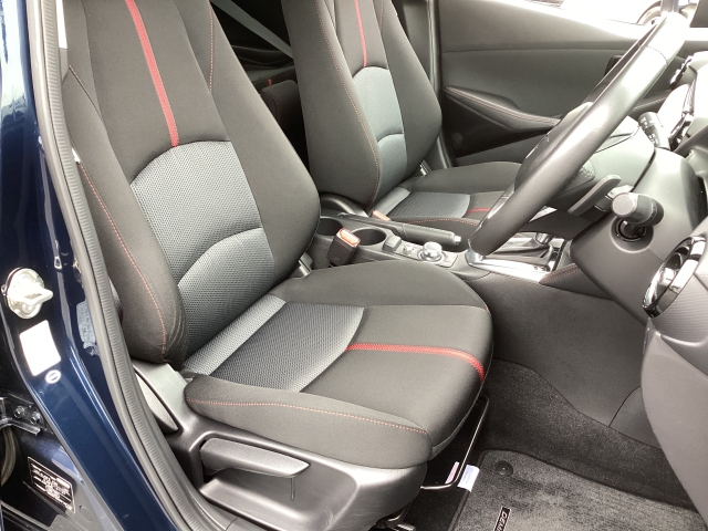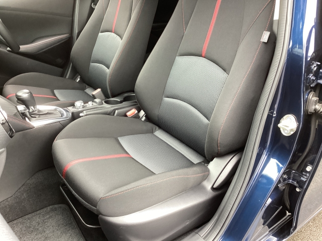 立体感があり、シート中央部とサイド部をくっきりと分断したサポート性の高い形状のシートが「人馬一体」感を強く演出しています。