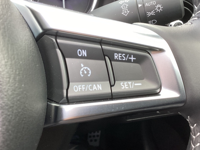 クルーズコントロールをセットすると、アクセルを踏まずに設定速度で定速走行ができ、高速時に於けるドライバーの負担軽減を図り快適走行ができます。