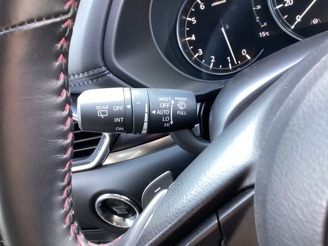 レバーをAUTOの位置にしているとき、レインセンサーが雨を感知すると、雨量に応じてワイパーが自動で作動してくれるオートワイパーを装備!設定変更で非作動にすると、間欠作動に固定されます。