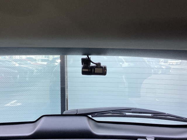 リア側ドライブレコーダー。運転中の映像・音声などを記録して、交通事故やトラブルが起きた時の正確な状況把握に役立つドライブレコーダーが装着されています。