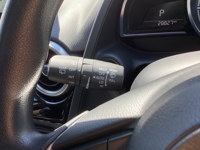 レバーをAUTOの位置にしているとき、レインセンサーが雨を感知すると、雨量に応じてワイパーが自動で作動してくれるオートワイパーを装備!設定変更で非作動にすると、間欠作動に固定されます。